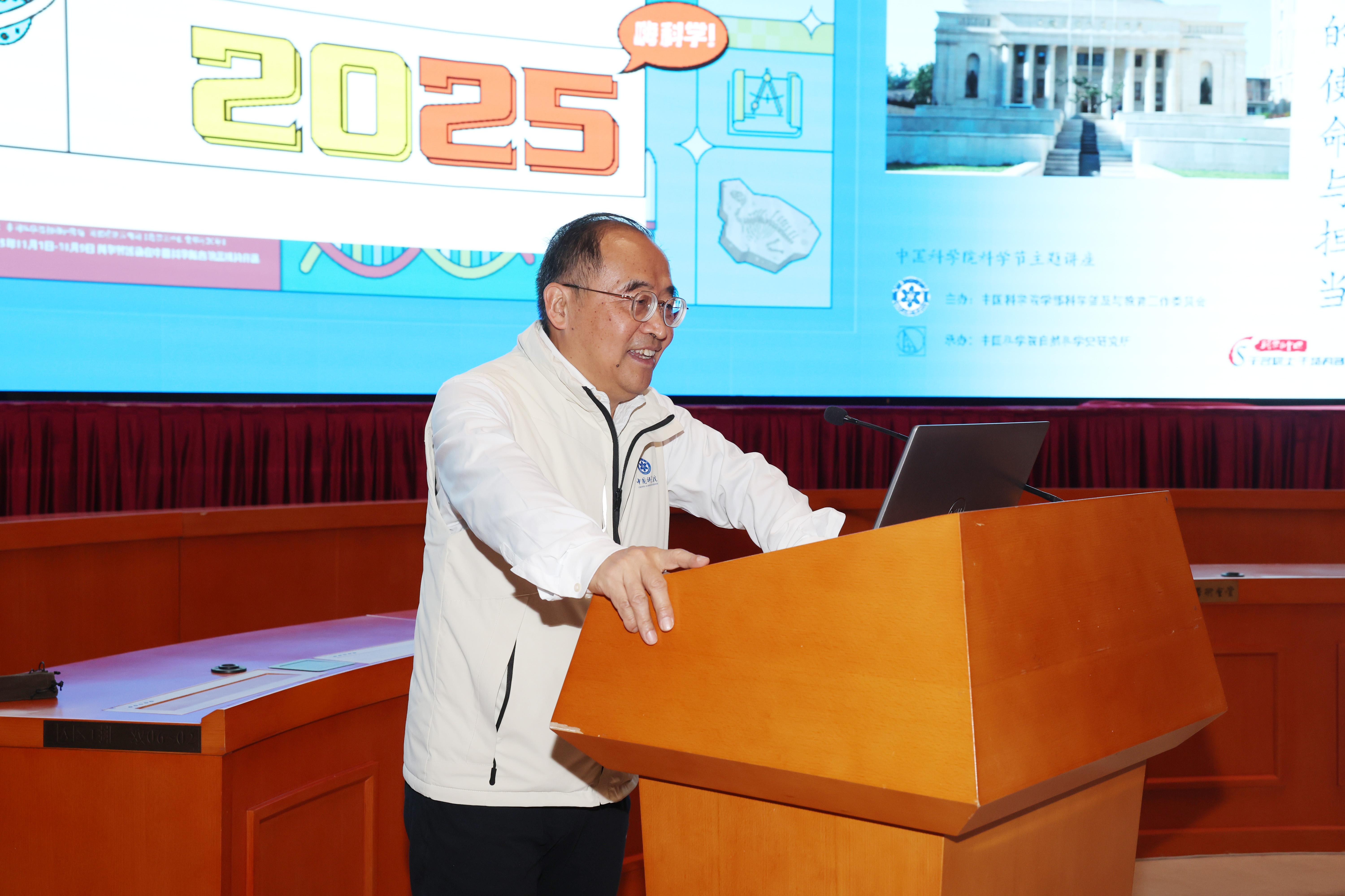 中国科学院学部工作局三级职员周德进在致辞中表示,“中国科学院的使命与担当”系列讲座是践行中国科学院“与祖国同行、与科学共进”理念的重要载体,既是引导科研人员深化对国家战略科技力量核心使命的认知,更是搭建科学普及的桥梁,让创新精神浸润公众尤其是青少年心田,为科技创新培育后备力量。