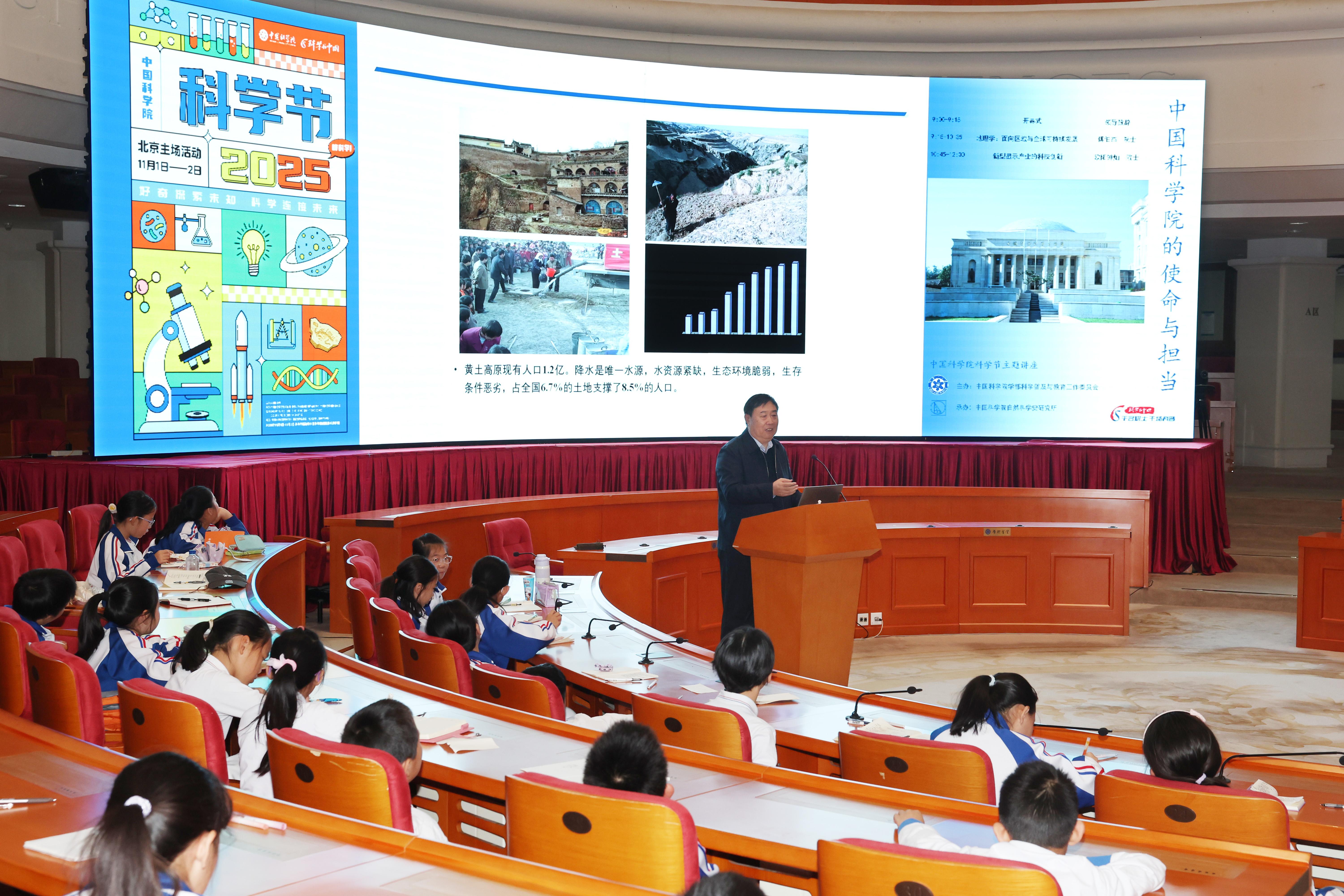 11月1日,第六届“中国科学院的使命与担当”主题讲座在中国科学院学术会堂举行。本次讲座特邀中国科学院院士傅伯杰、中国科学院院士欧阳钟灿作为主讲嘉宾,吸引了中国科学院院属单位科研人员、北京中科启元学校、中国科学院附属实验学校师生等200余名观众参与。