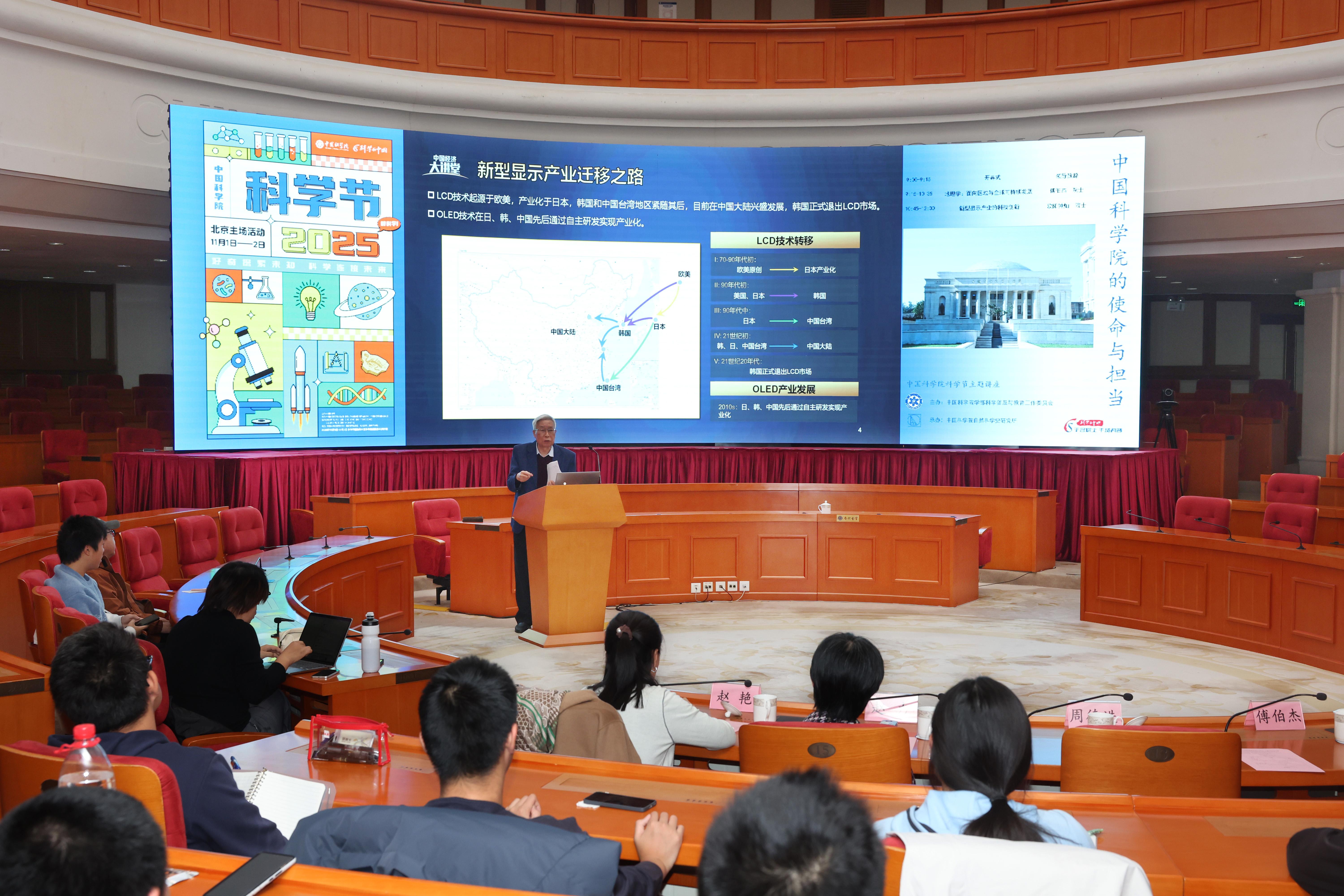 图为中国科学院院士欧阳钟灿围绕《新型显示产业的科技创新》主题开讲。受访单位供图